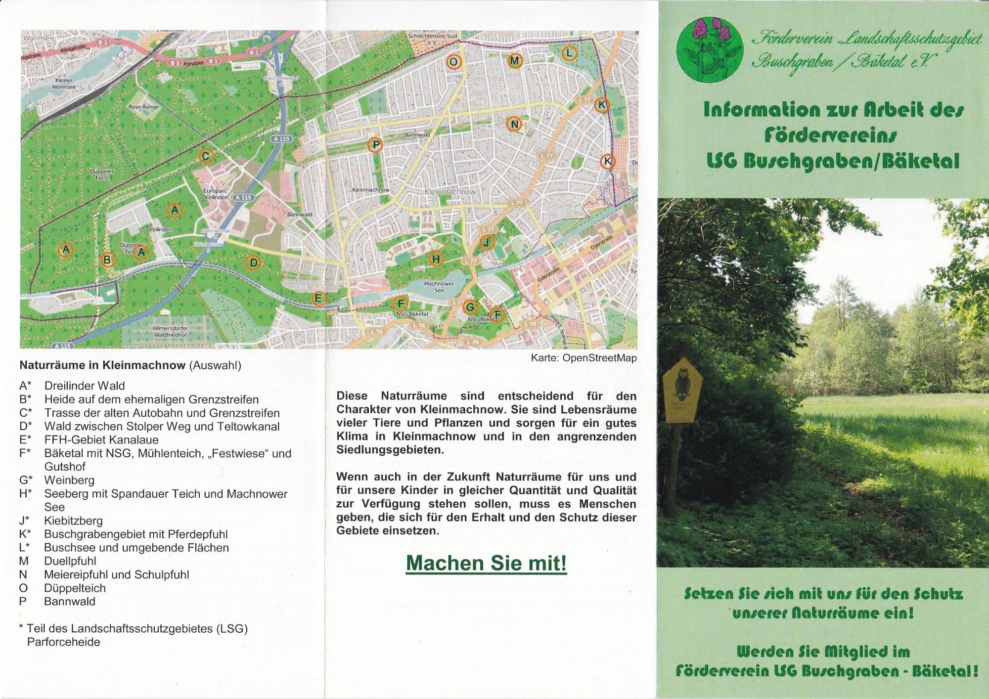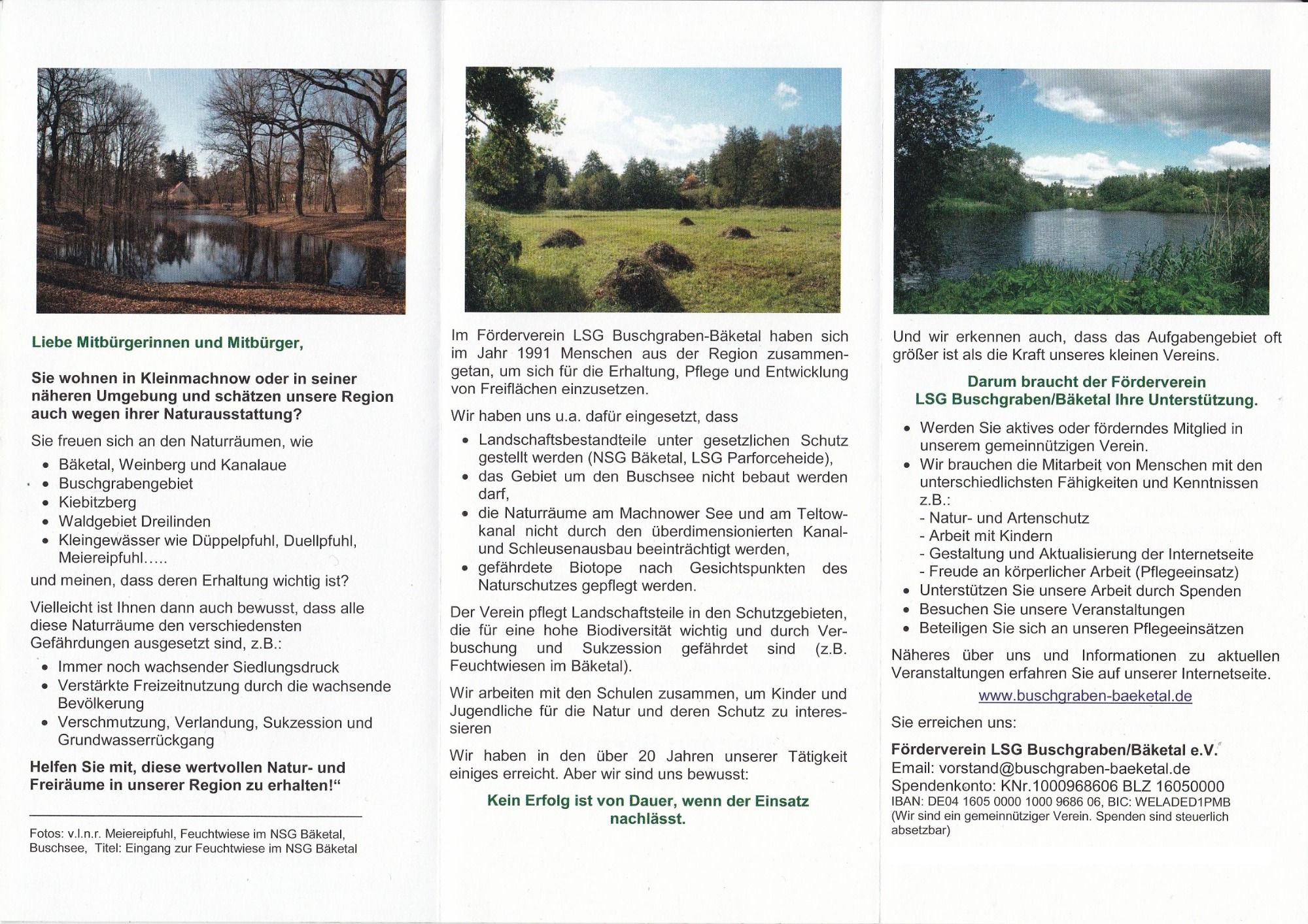 Der Verein hat seinen Namen inzwischen leicht verändert in: Landschaftsförderverein Buschgraben-Bäketal